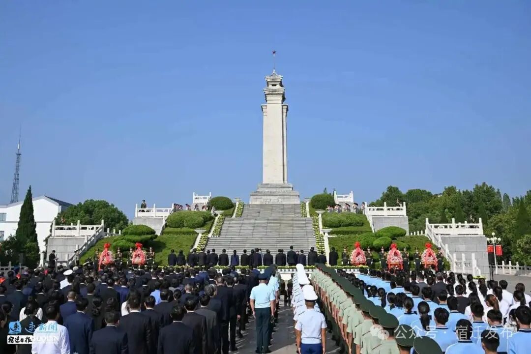 今年是中国人民抗日战争暨世界反法西斯战争胜利80周年,9月30日是第十二个烈士纪念日。9月30日上午,宿迁在宿北大战马陵山革命烈士纪念塔广场举行向人民英雄敬献花篮仪式。市委书记盛蕾,市委副书记、市长刘浩,市人大常委会主任、党组书记冯岩,市政协主席、党组书记卞建军,与全市各界代表一起,向人民英雄敬献花篮,深切缅怀革命先烈的不朽功绩,大力弘扬革命先烈的崇高精神,进一步激励全市上下攻坚克难、奋勇前行,高质量打好“十四五”收官战,推动中国式现代化宿迁新实践取得新突破。